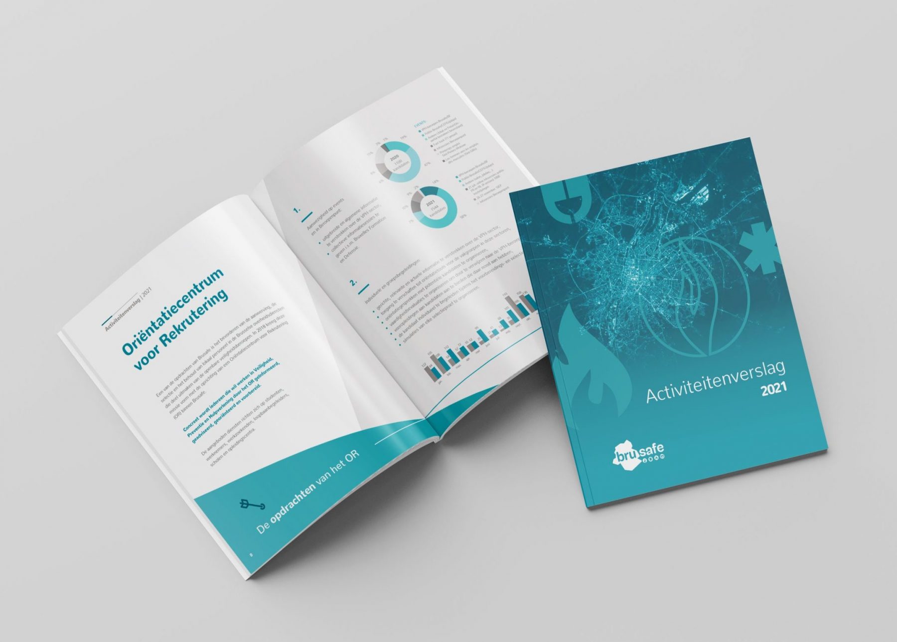 Brusafe is de Regionale School voor Veiligheid, Preventie en Hulpverlening. Studiorama heeft een visuele identiteit ontwikkeld op basis van de huisstijl en heeft de lay-out van de jaarverslagen verzorgd.